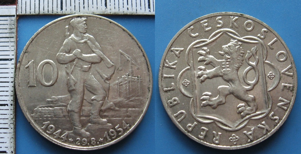 - 1954 - 10 koruna, stříbro - 10. výročí SNP