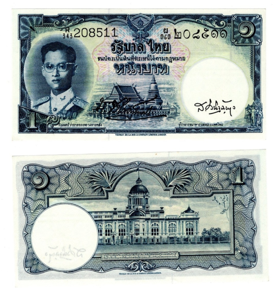 1955 - 1 baht, bankovka, R/343 208511 - Thajsko, krásný stav