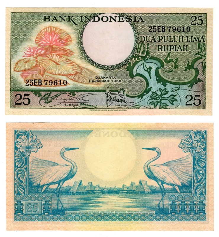 1959 - 25 rupiah, bankovka, 25EB 79610 - Indonésie, krásný stavSkladem225 Kč/ ks