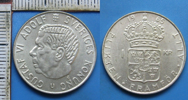 • 1965 - 1 krone, stříbro - Gustaf VI. Adolf, Švédsko
