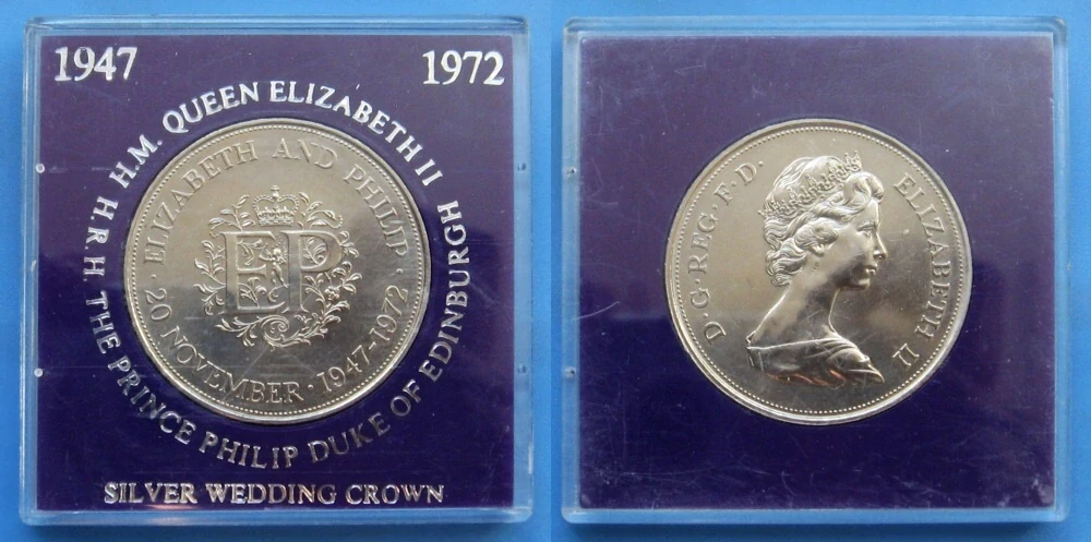 1972 - 1 crown - Velá Británie, výroční, stříbrná svatba, original plastová etueSkladem185 Kč/ ks