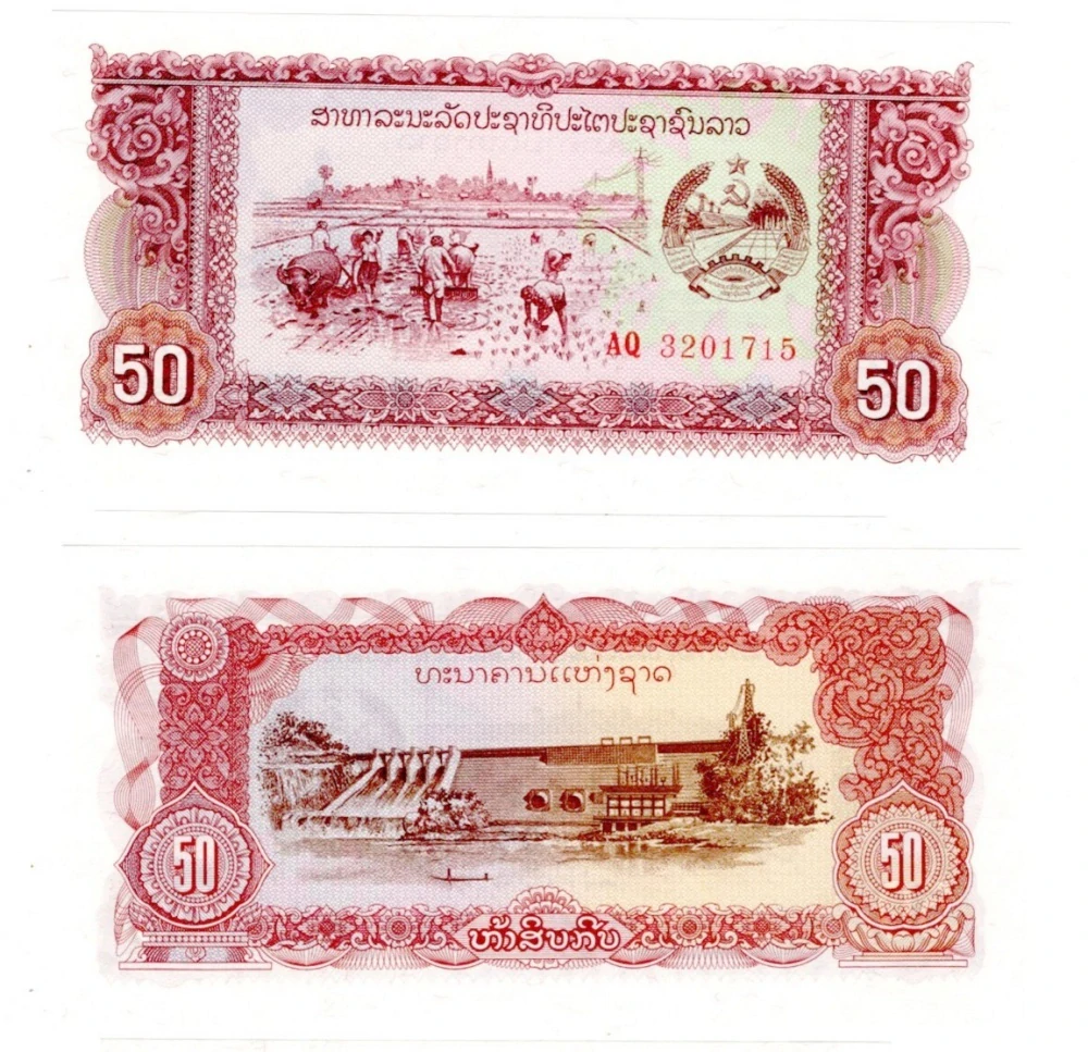 • 1979 - 1988 - 50 kip, bankovka, AQ 3201715 - Laos, krásný stav