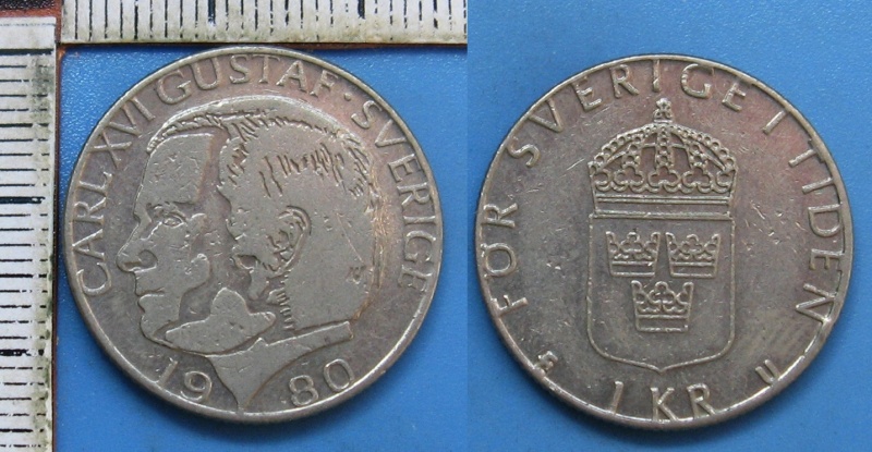 • 1980 - 1 krone - Carl XVI. Gustaf, Švédsko