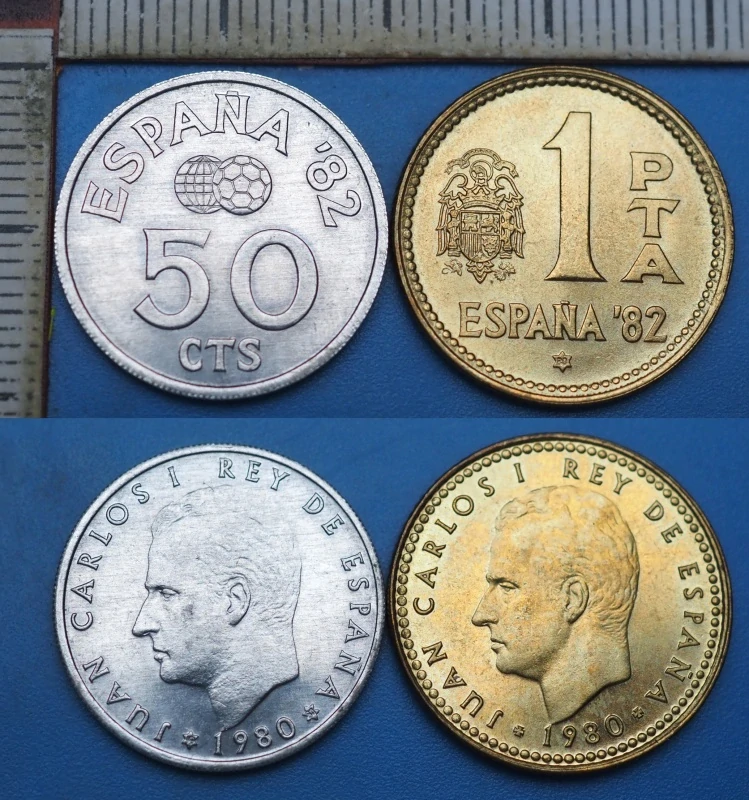 1980 - 50 centimos a 1 peseta - 2x Španělsko, Juan Carlos I., Espaňa 82