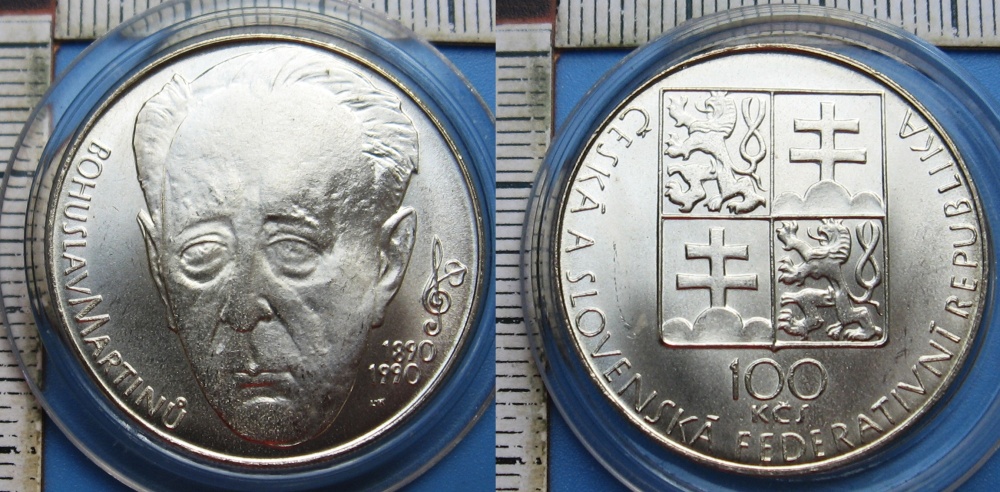 - 1990 - 100 Kč, stříbro - 100 let narození Bohuslava Martinů, kapsle