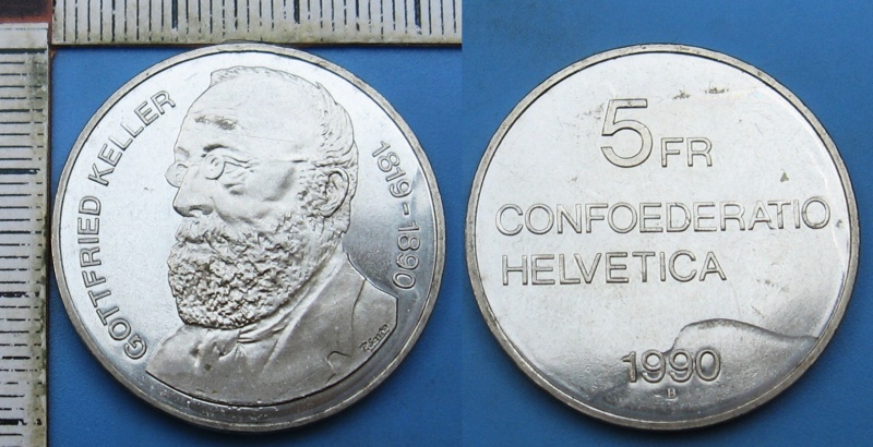 1990 - 5 francs - Švýcarsko, Gottfried Keller