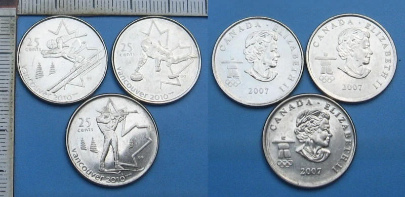 2007 - 25 cents - 3x Kanada, Vancouver 2010, zimní sporty - každý jinýSkladem55 Kč/ ks
