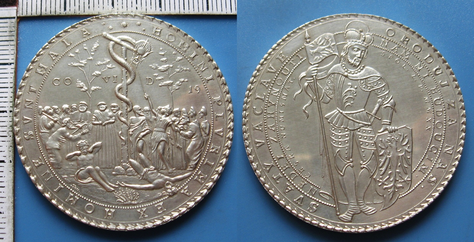 Medaile je ražena ve váze tolaru a navazuje na tradici ochraných amuletů ze 16. století. V této době si kupovali bohatí měšťané a nobilita tzv. morový tolar ve víře, že je ochrání před před nákazou morem.