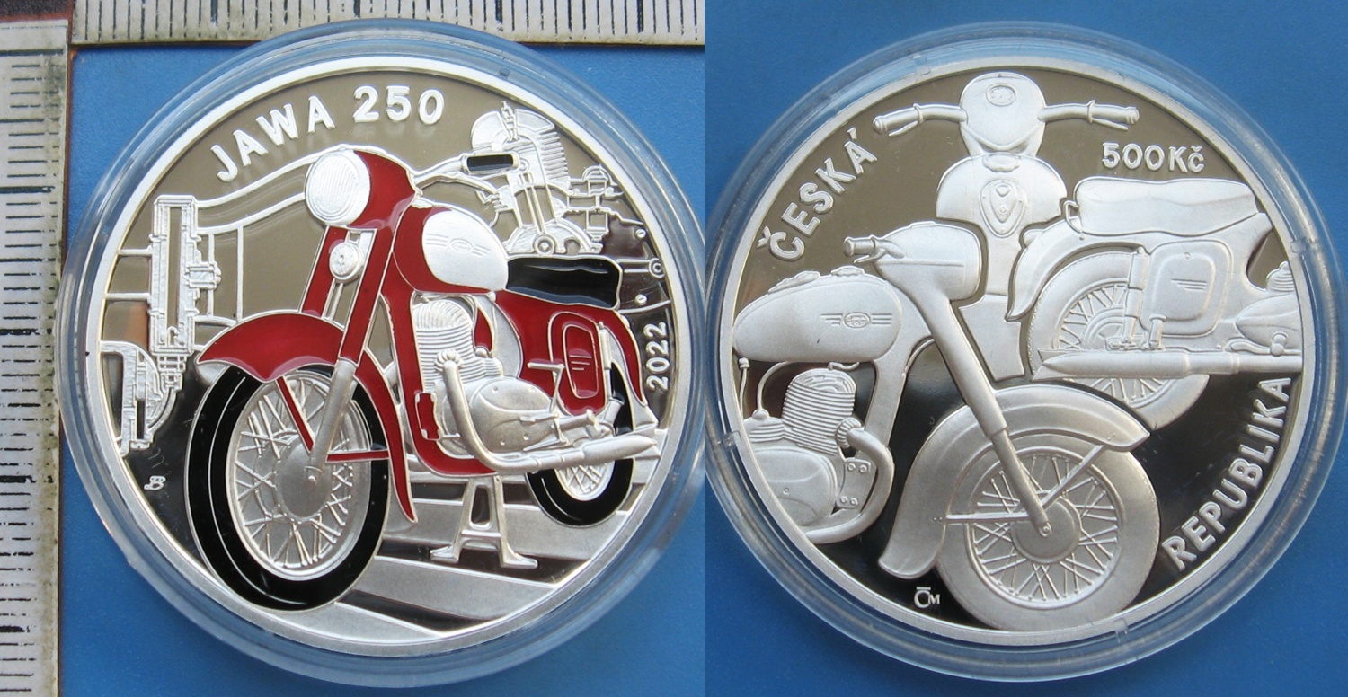 2022 - 500 Kč, stříbro, PROOF - Jawa 250, certifikát, kapsle, etue